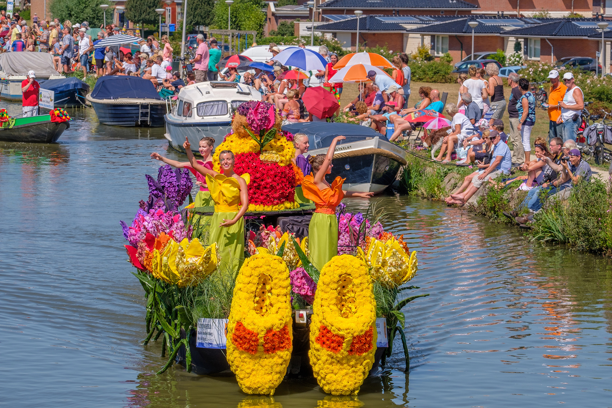 И вот мы уже зрители красочного водного парада - Varend Corso Westland, где десятки украшенных цветами барж проходят по каналам под музыку, превращая город в яркую праздничную сцену. Тематические композиции, цветочные инсталляции, фантазийные фигуры — всё это создаёт атмосферу праздника, от которой невозможно отвести взгляд. Зрелище впечатляет и взрослых, и детей.
