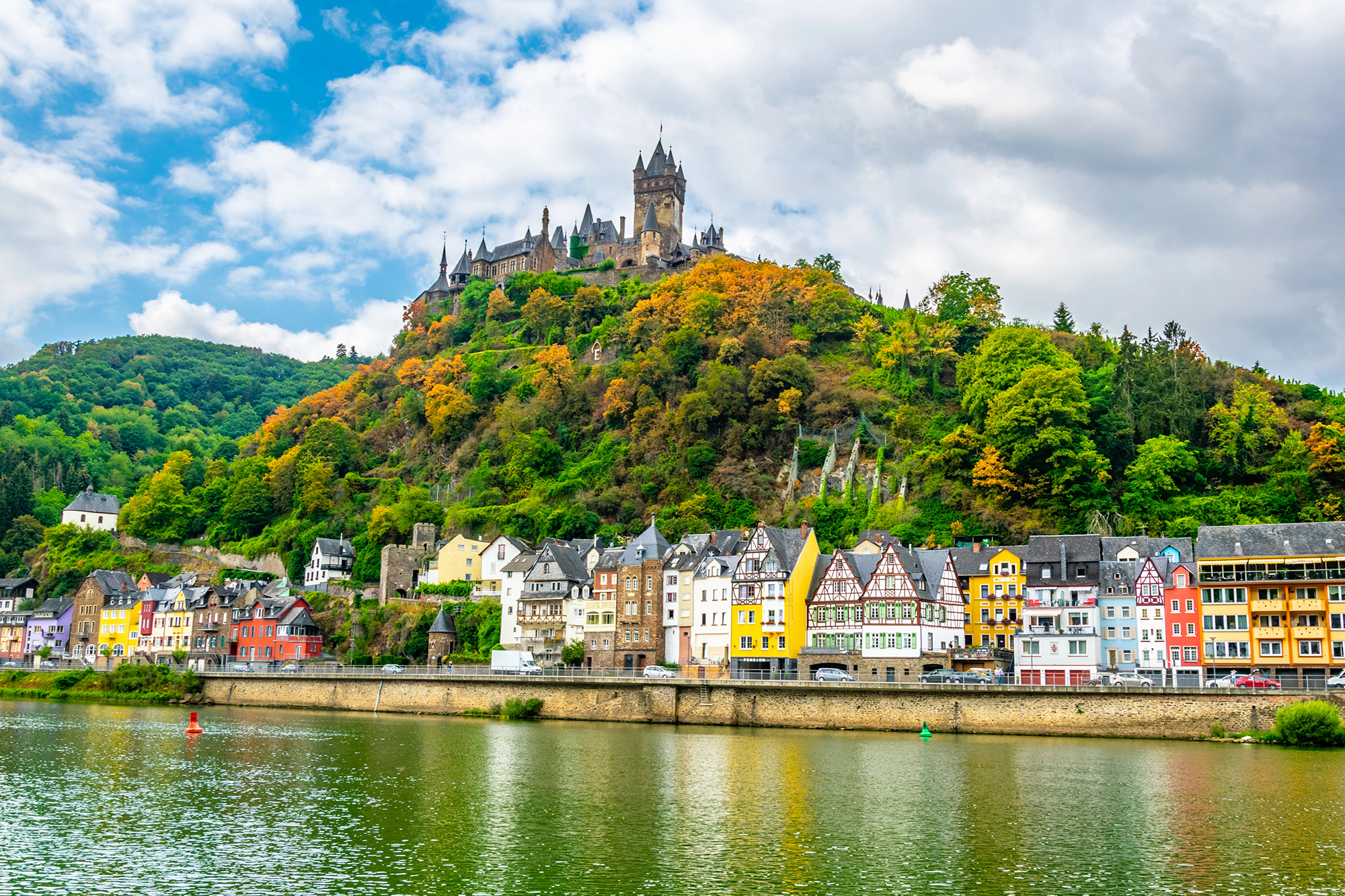 После завтрака отправляемся в один из древнейших замков Германии - Эльц, который называют "Сказкой из камня" с историей, насчитывающей более девятисот лет. Замок полностью сохранил свой исторический облик, потому что никогда не бывал разрушен. Эльц называют самым аутентичным средневековым замком Германии и сейчас им владеет уже 33-е поколение одной и той же семьи. Когда-то изображение этого замка украшало немецкую купюру в 500 марок. Затем нас ждёт встреча с Кохемом, уютно расположившимся на Мозеле среди виноградников. Прогуляемся по средневековым улочкам, полюбуемся фахверковыми домиками и для полноты впечатлений прокатимся по Мозелю на кораблике, где с бокалом мозельского сможем насладиться потрясающими пейзажами: средневековые замки, виноградники на склонах, прелестные города... Вечером мы дома.