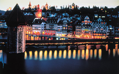 Капельбрюкке (также Капелльбрюкке, нем. Kapellbrücke — «Часовенный мост») — старинный мост в швейцарском городе Люцерне на реке РойсВид от фонтана со скульптурой на старинные часы на башне Цитглоге в Берне / Fountain with sculpture and Clock Tower "Zytglogge", BernДегустация швейцарского вина - St. Saphorin.Паломническая церковь Мария Герн, Гора Вацманн, Берхтесгаден, Бавария / Wallfahrtskirche Maria Gern, Berchtesgaden, BayernНочной вид на главный фасад Оперного театра Женевы, Швейцария /  Grand Théâtre de Genève
