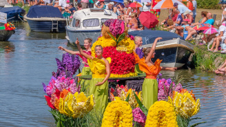 И вот мы уже зрители красочного водного парада - Varend Corso Westland, где десятки украшенных цветами барж проходят по каналам под музыку, превращая город в яркую праздничную сцену. Тематические композиции, цветочные инсталляции, фантазийные фигуры — всё это создаёт атмосферу праздника, от которой невозможно отвести взгляд. Зрелище впечатляет и взрослых, и детей.