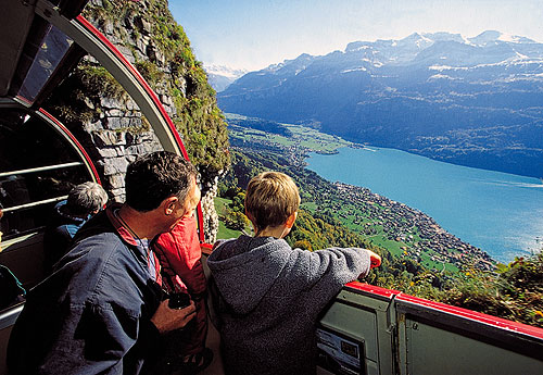 ЦюрихАльпыАльпийский рогИнтерлакенШвейцария, АльпыПотрясающие виды, открывающиеся при путешествии на настоящем паровом поезде - Бриенз Ротхорн Бан, который отъезжает из Бриенза / Brienz-Rothorn-Bahn