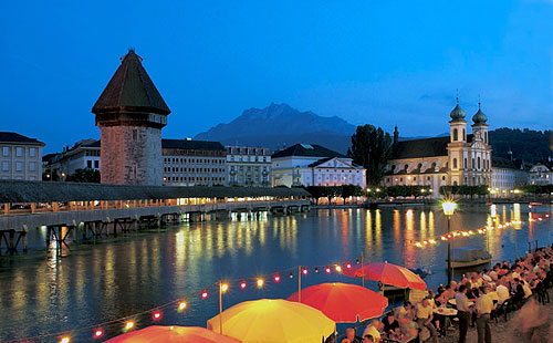 Капельбрюкке (также Капелльбрюкке, нем. Kapellbrücke — «Часовенный мост») — старинный мост в швейцарском городе Люцерне на реке РойсВид от фонтана со скульптурой на старинные часы на башне Цитглоге в Берне / Fountain with sculpture and Clock Tower "Zytglogge", BernДегустация швейцарского вина - St. Saphorin.Паломническая церковь Мария Герн, Гора Вацманн, Берхтесгаден, Бавария / Wallfahrtskirche Maria Gern, Berchtesgaden, BayernНочной вид на главный фасад Оперного театра Женевы, Швейцария /  Grand Théâtre de Genève