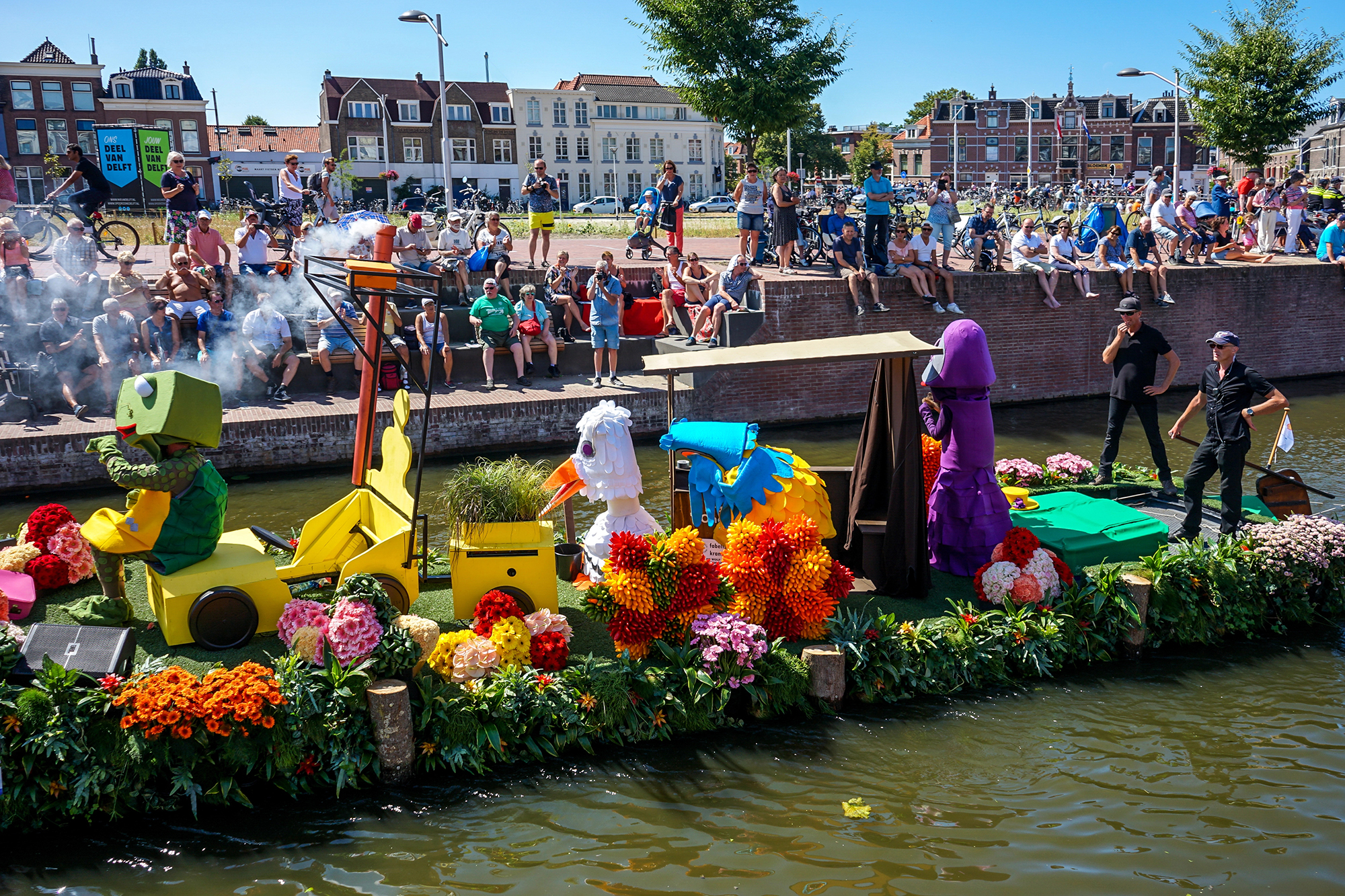 И вот мы уже зрители красочного водного парада - Varend Corso Westland, где десятки украшенных цветами барж проходят по каналам под музыку, превращая город в яркую праздничную сцену. Тематические композиции, цветочные инсталляции, фантазийные фигуры — всё это создаёт атмосферу праздника, от которой невозможно отвести взгляд. Зрелище впечатляет и взрослых, и детей.